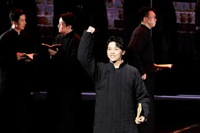 “2022年国庆节,话剧《抗战中的文艺》首演时,我23岁,剧中呈现的也正是聂耳先生21岁至23岁的人生片段。”罗一舟坦言,三年前最开始接到聂耳这个重要角色时,年龄的巧合成为他走近人物的第一把钥匙。他与导演团队达成共识——突出聂耳的“青春特质”:“田汉先生等前辈角色偏沉稳,而聂耳当时正是朝气蓬勃的年纪,所以我在台词处理上会加入一点俏皮感、阳光感,让他的形象更鲜活。”