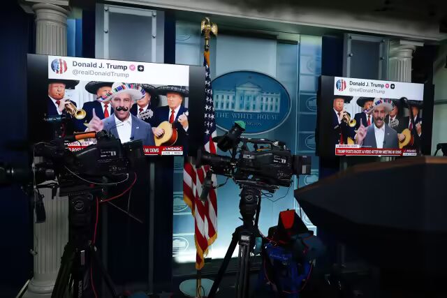 还有,特朗普还亲自发图片,将众议院民主党领袖戴上一顶墨西哥帽子。如果在以往,这是妥妥的种族主义啊。