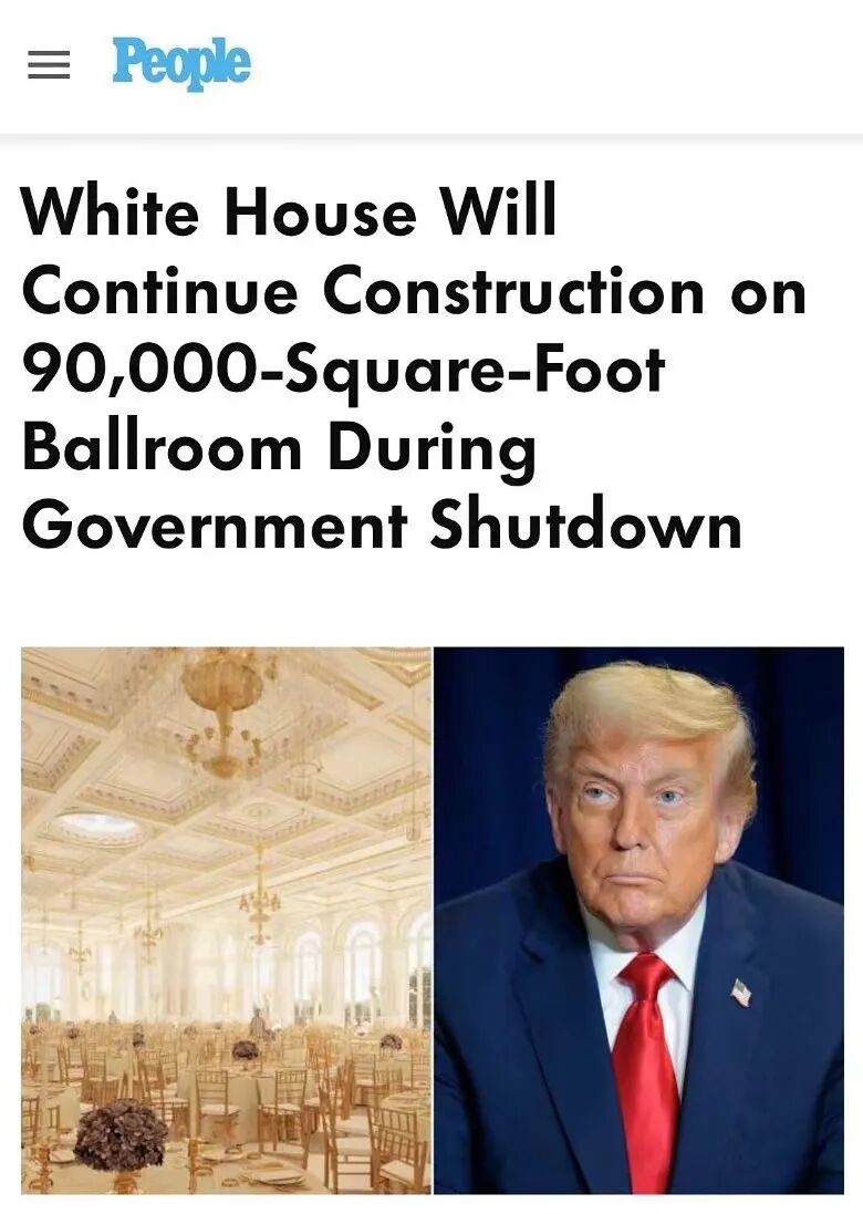 而且,很多人看到,美国政府在关门,美国人拿不到薪水和服务,但白宫的建设还在火热进行中。