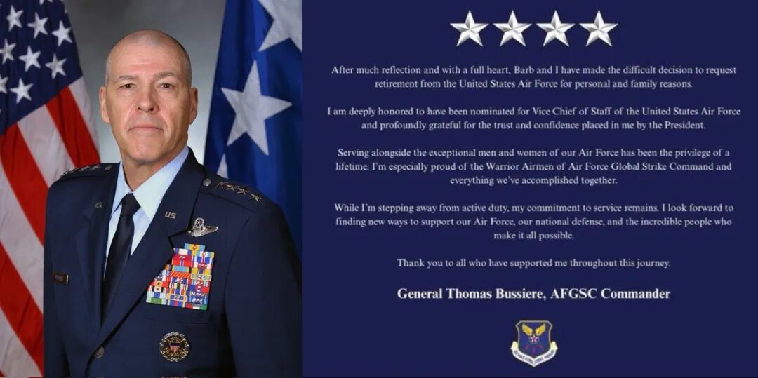 美防长召开全美将军大会后第二天,美空军高级将领宣布退役。