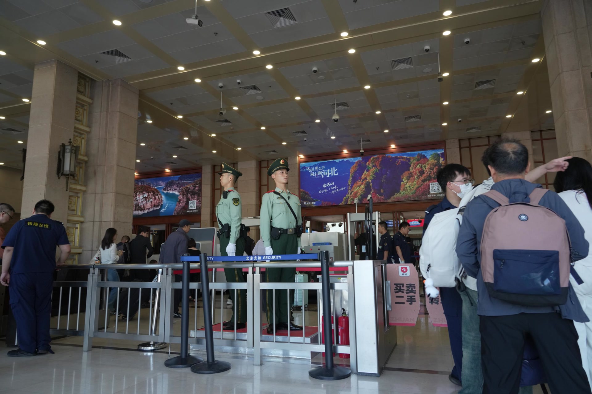武警北京总队执勤第二支队周程表示:“节日期间,我们精心挑选执勤人员,严格落实战备制度,保持全员全时全装在岗在位,执勤中我们及时观察旅客安全及周边动态,及时与驻站公安、消防、医疗、站内工作人员联系联防,确保遇有情况能够高效联动,确保整个假期旅客出行平安。”
