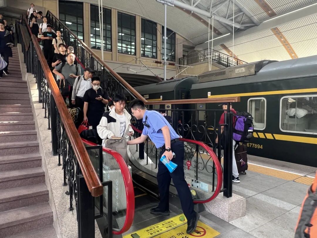 天津站组织89名高校青年志愿者开展志愿服务活动,在车站候车大厅、12306服务台、售票厅、进出站口等场所为旅客提供问询解答、方位指引、重点帮扶等服务。同时,借助客运营销辅助系统实时预测客流情况,及时与天津市交通委、站区办、公交、地铁等部门做好沟通联系,实现客流密集到达时段增派运力,路地联动共同做好接驳工作。