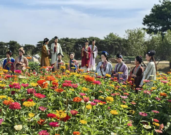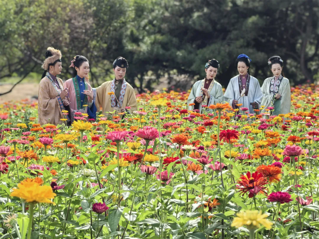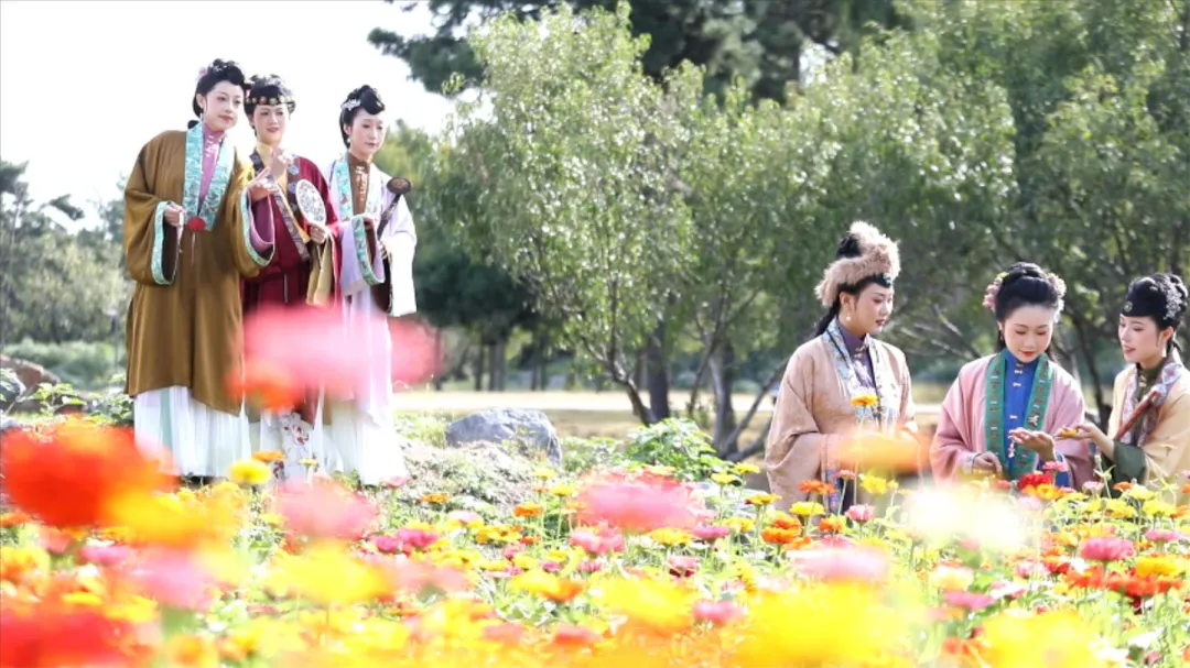 而让这幅静态油画“活”起来的,是古画中走出的“十二美人”。她们衣袂飘飘,步履轻盈,穿梭于花海小径。身着“捻珠观猫”服饰的演员金钰锦介绍:“我们复原的正是珍藏于故宫的《胤禛十二美人图》,其原型便来自圆明园。我们希望通过这种形式,让游客沉浸式体验古人的雅致生活。”这一幕古今交融的奇景,已成为今年金秋最动人的画面之一。