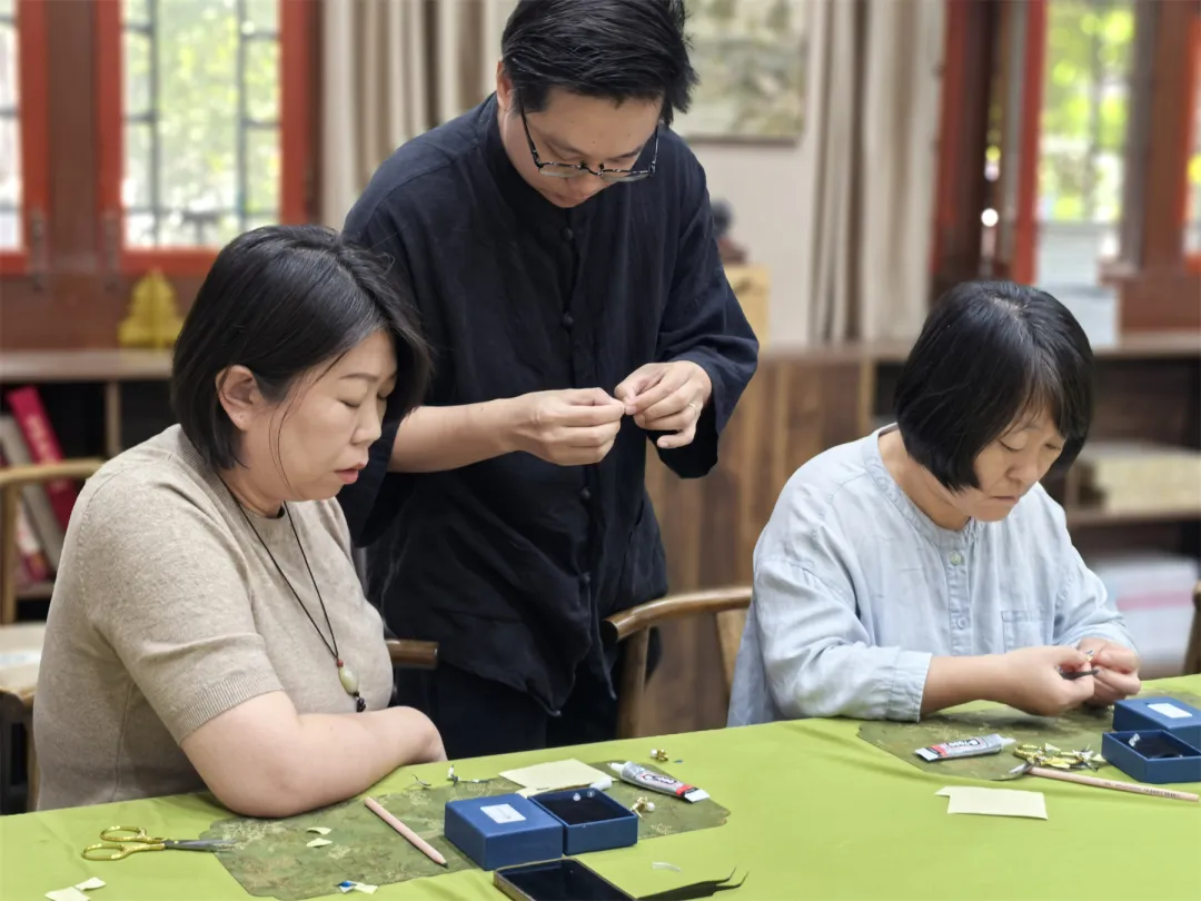 “点翠历来是皇家宫廷技艺,与圆明园的皇家身份十分契合,”圆明园非遗手作指导老师陆韬讲解道,“如今通过工艺改良,我们能让这门艺术‘飞入寻常百姓家’,让大家在亲手制作中,感受其超越时代的雅致美学与匠心精神。”