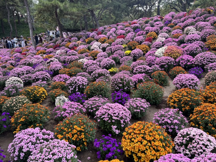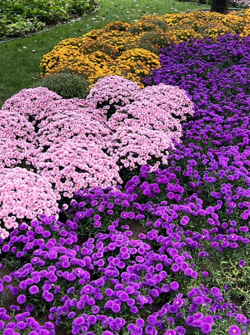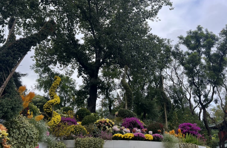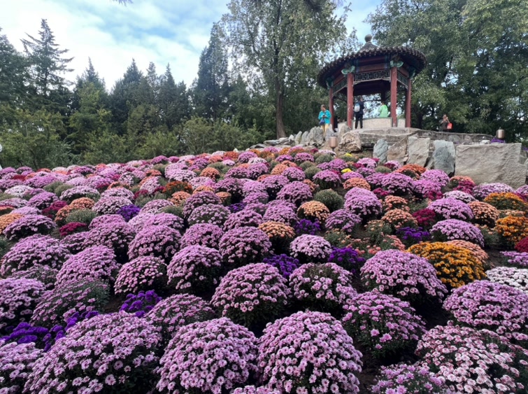 10月3日,漫步在日坛公园中的人们与各色鲜花浪漫邂逅。丰富的色彩、淡雅的花香,为人们的假期再添一份惬意。