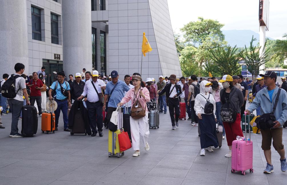 外国旅游团经云南省河口口岸入境。(7月10日摄)新华社发(梁志强摄)