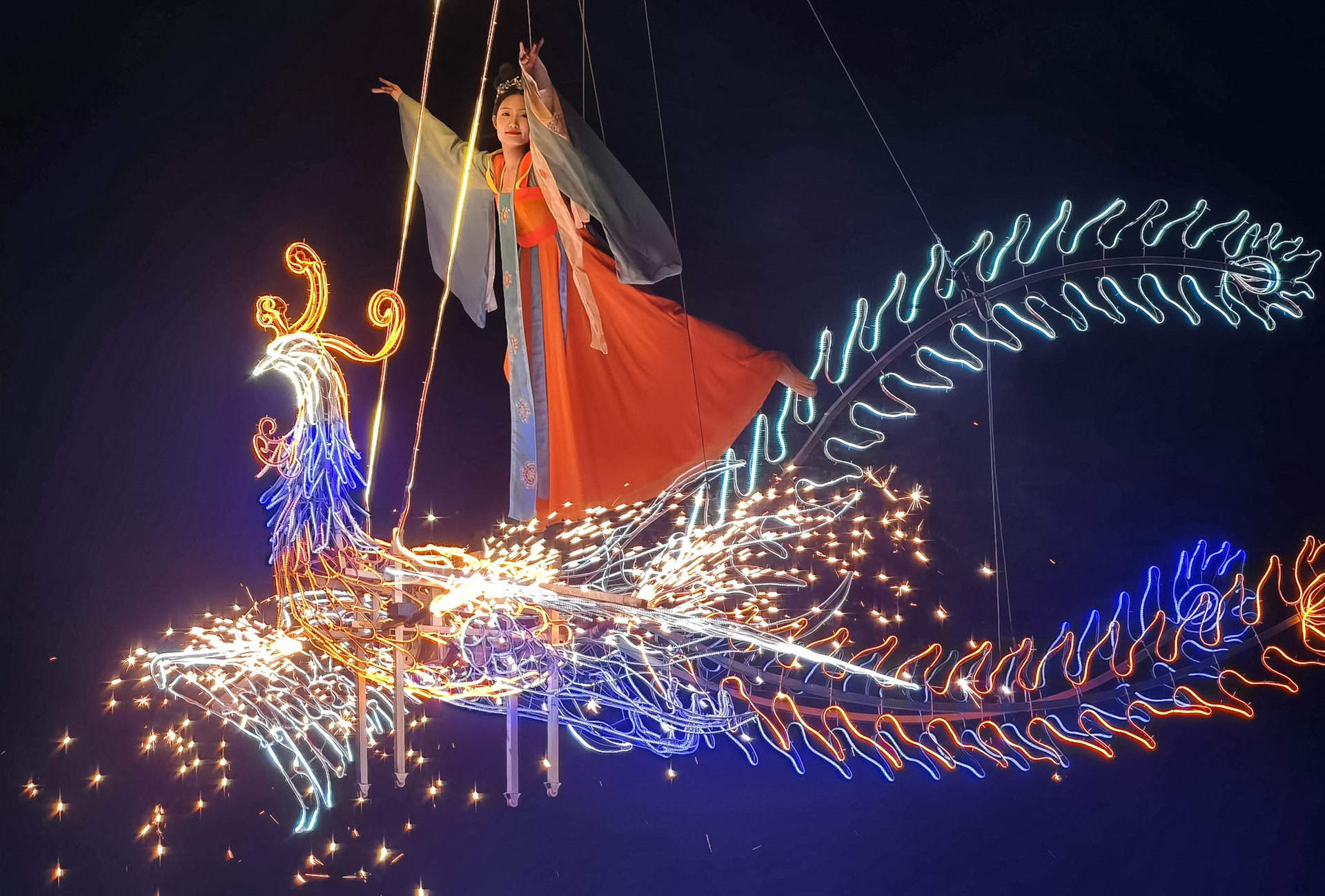 傍晚时分,夜幕低垂,世界公园在6万余盏彩灯同时点亮的瞬间,化作一片流光溢彩的梦幻之境。“快看,灯亮了!”人群中顿时发出一阵欢呼声。游客漫步在70多组灯组、6万余件彩灯挂饰中,仿佛闯进一个现实与幻想交织的奇妙世界。