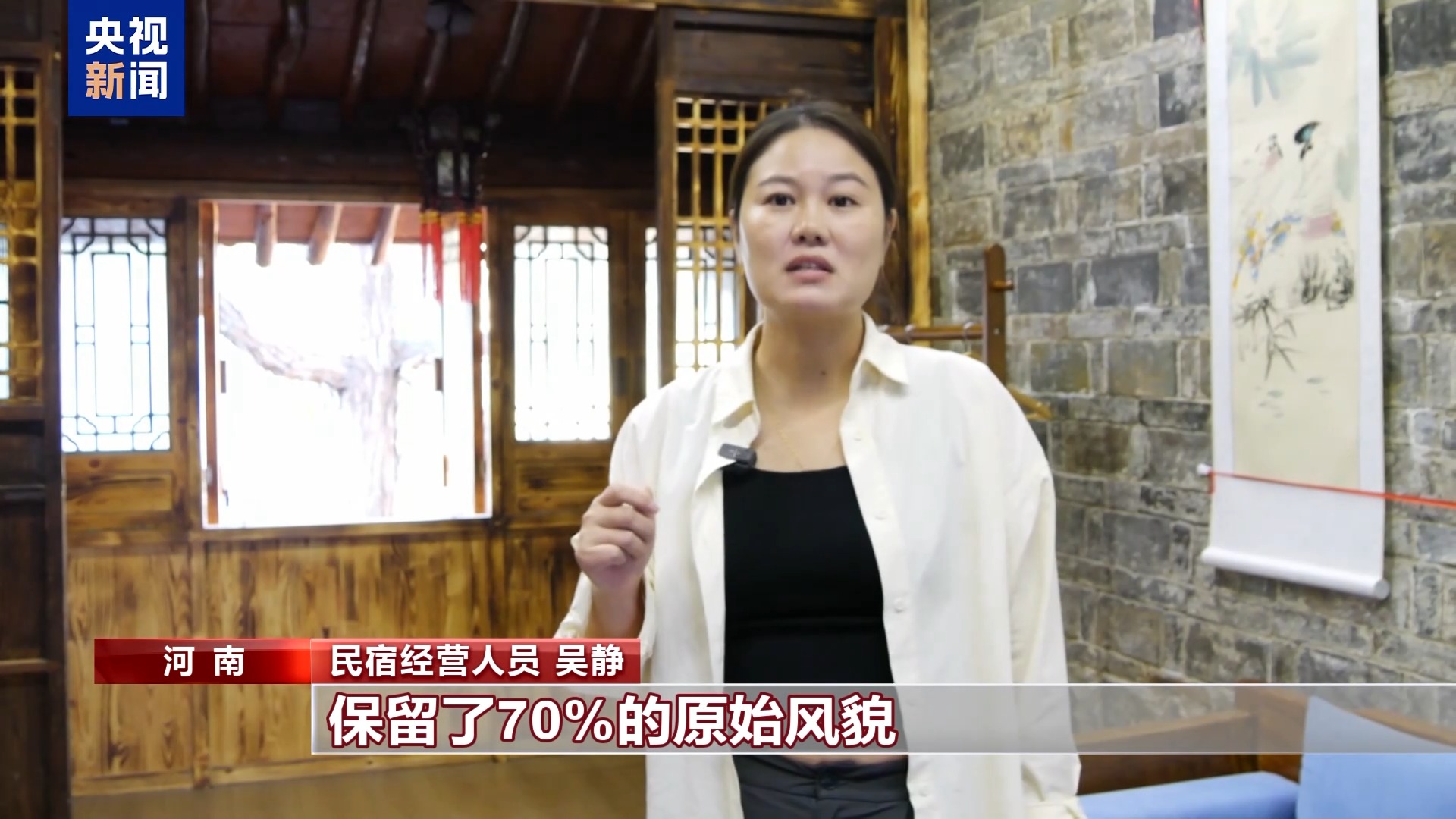 民宿经营人员 吴静:我们民宿其实是一个百年老屋,保留了70%的原始风貌。支撑的柱子,它是百年前的原有的老物件,我们也是按照原有的方位重新设计。