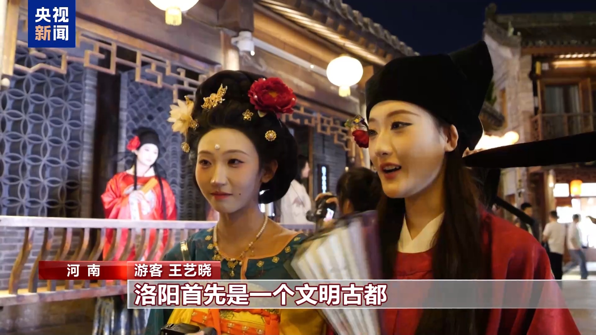 游客 王艺晓:洛阳首先是一个文明古都,我对这个历史比较感兴趣,再加上汉服也是很有名。古色古香的挺好的。