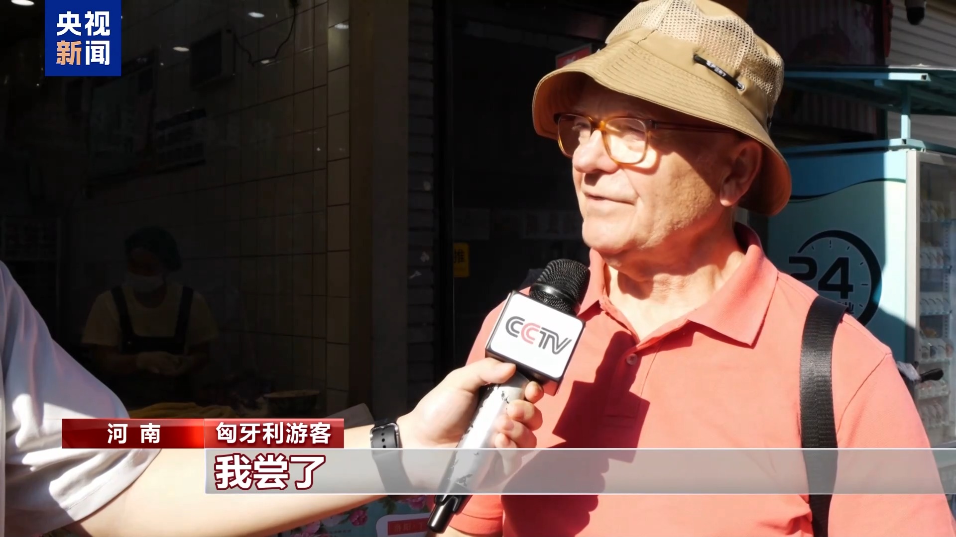 匈牙利游客:我尝了,挺好吃的。有点像茉莉花茶的味道。