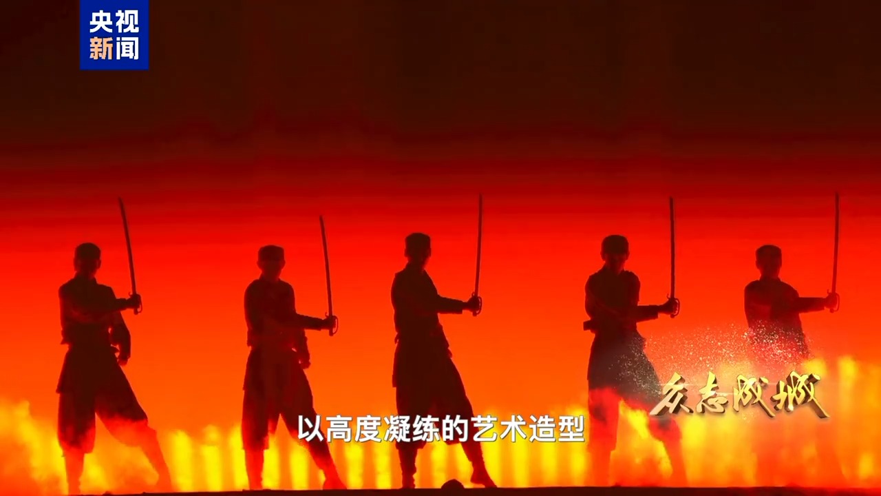 这段极富视觉张力的骑兵连舞,以高度凝练的艺术造型,在遍地烽火中展现出中华民族的战斗形象,令人耳目一新。铁道游击队舞充满巧思与设计,勾勒出中华儿女的机智抗争身影。气势迸发的大刀舞,尽显血战到底的无畏气魄。整台晚会的舞美造型简洁而富有现代感,为了增强节目的情景感,中央广播电视总台创作团队让大量珍贵视频史料,经过AI修复等手段,有机融入舞台表演之中。