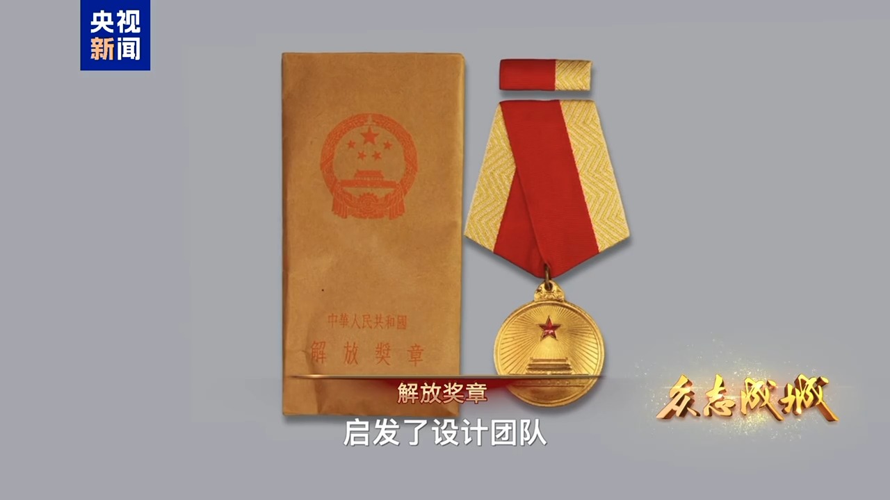中央美术学院设计学院副教授陈蔚平介绍,一个是独立自由奖章,一个是解放奖章,一枚是红金色,一个是绿金色,特别漂亮,就想到红色、绿色和金色作为这一次颜色的基本色。