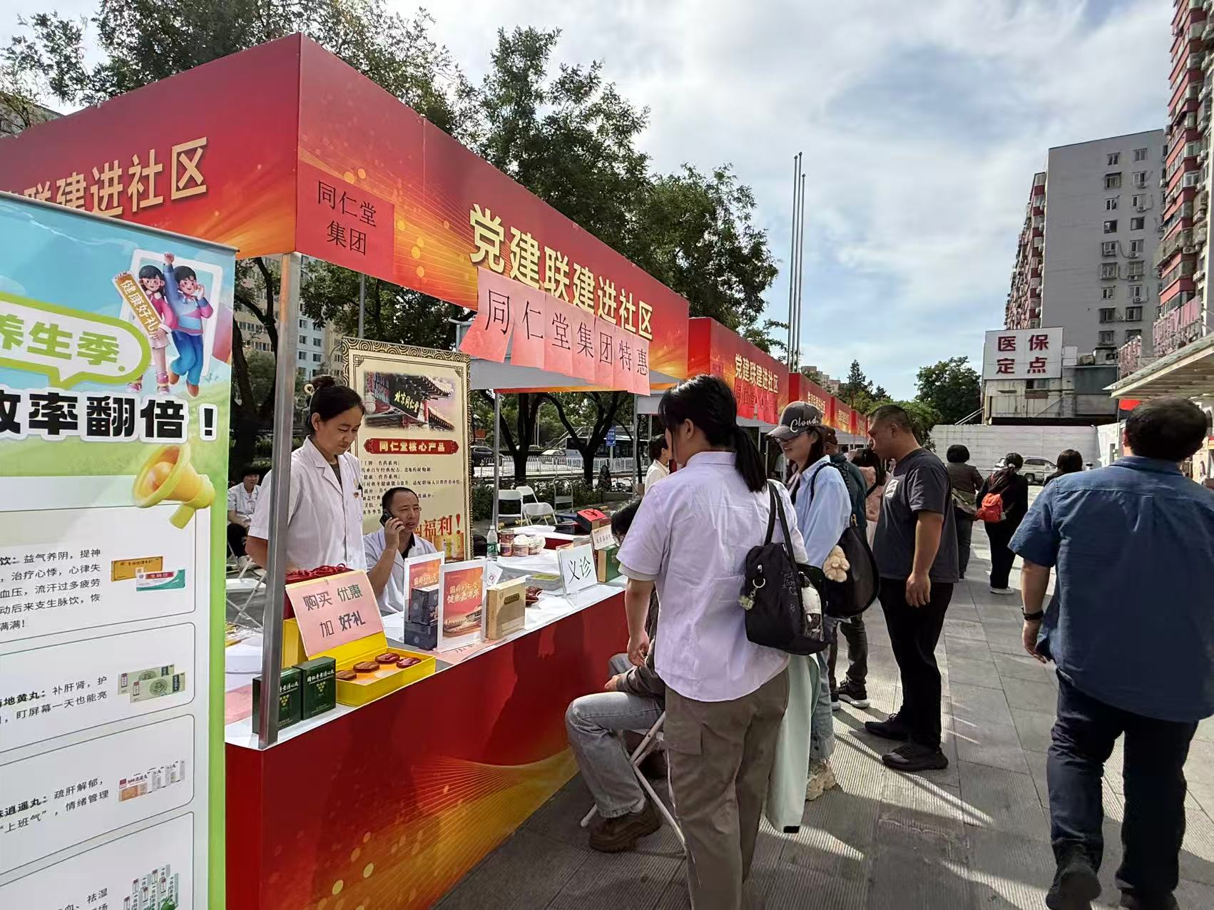 “同仁堂是老字号,质量放心,活动价太划算了!”丰台区东铁匠营街道何所有美好生活体验中心广场热闹非凡,“党建联建进社区”活动在此拉开帷幕。同仁堂集团牵头发起的“党建引领产业创新联建机制”(以下简称“联建机制”)成员单位带着健康养生、日用百货、特色文创等200余种特色产品摆摊设点,以“质优价优”为群众送上“节日礼包”,用实际行动践行“为人民服务”的初心承诺。
