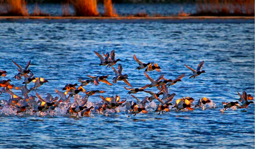 沿线水库、湿地清波荡漾,引得鸟群来此迁徙中转或“安家落户”,其中不乏中华秋沙鸭、青头潜鸭等国家一级保护动物,以及阔嘴鹬、红嘴巨鸥等北京罕见的鸟类。