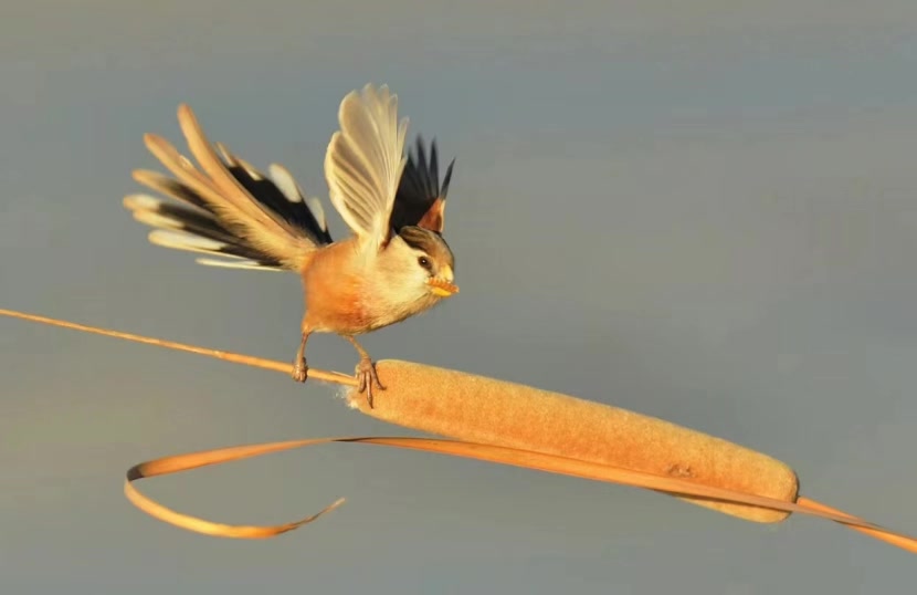 永定河畔,圆鼓鼓的震旦鸦雀脚爪牢牢地钩住芦苇秆,用如黄宝石一样的喙啄击苇杆,“嘀嗒嘀嗒”寻找着里面的美食。