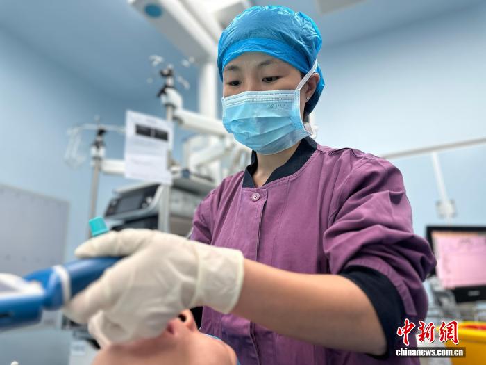 阮洪艳在手术室内为患者做全麻气管插管。受访者供图
