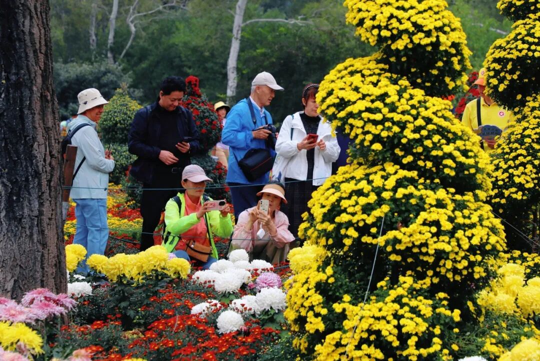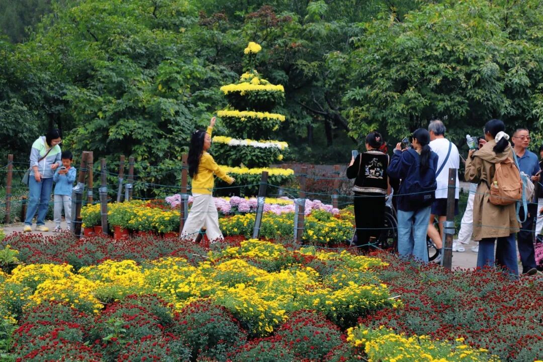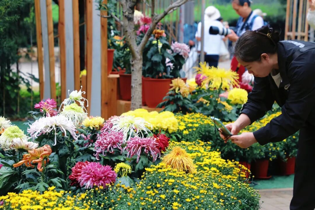 位于科普馆西侧的核心展区是游客们最为喜爱的打卡点,在这里斑斓多彩的小菊次第开放,造型多样的艺菊点缀其间,令人目不暇接,游客们徜徉花海当中,感受秋日盛景。