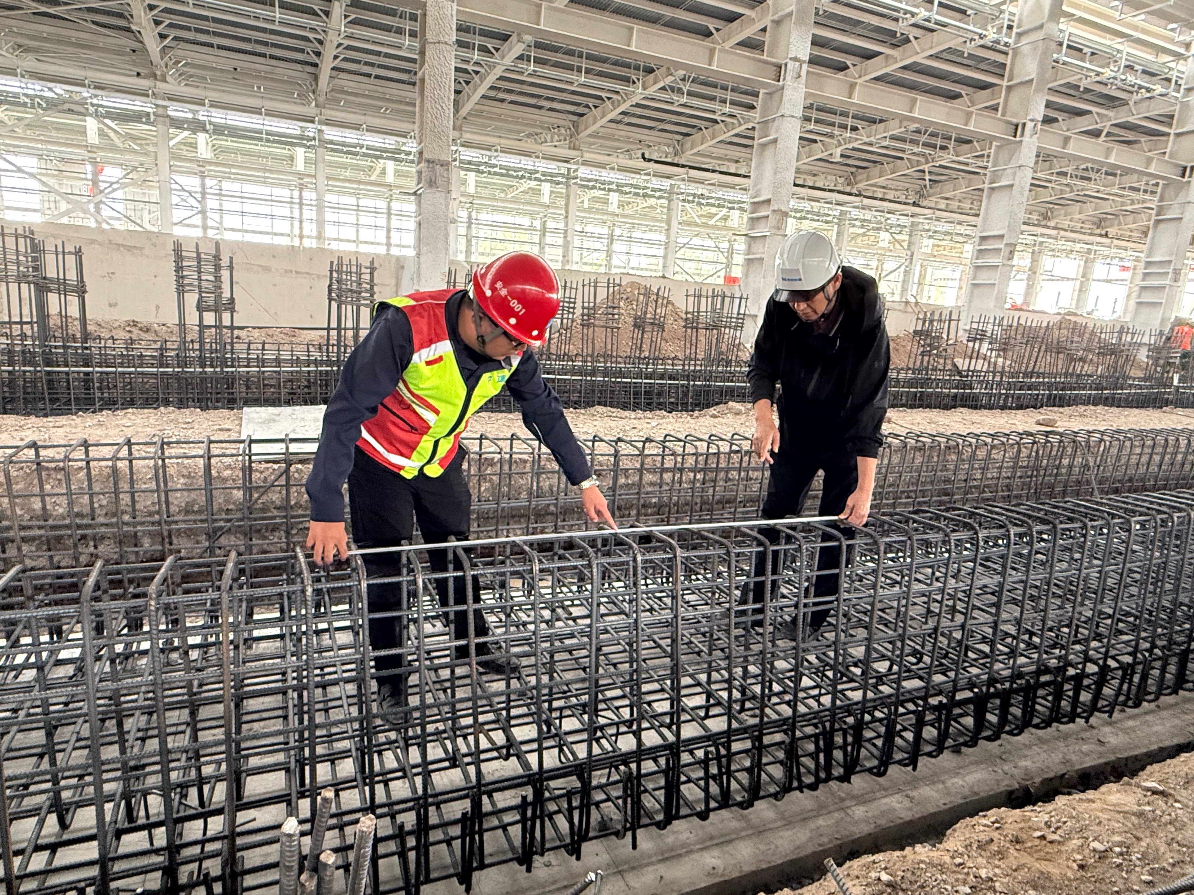 车库中央,一道将近200米长的钢筋笼犹如一条长龙,贯穿整个车库。“这里就是列车检修沟,建好后上方停着列车,下方检修人员就可以钻进列车底部进行检查。”说话间,刘兵从兜里拿出卷尺,对钢筋的间隙进行检查。“为了确保强度,每条钢筋间距保持15厘米,不能多也不能少。”