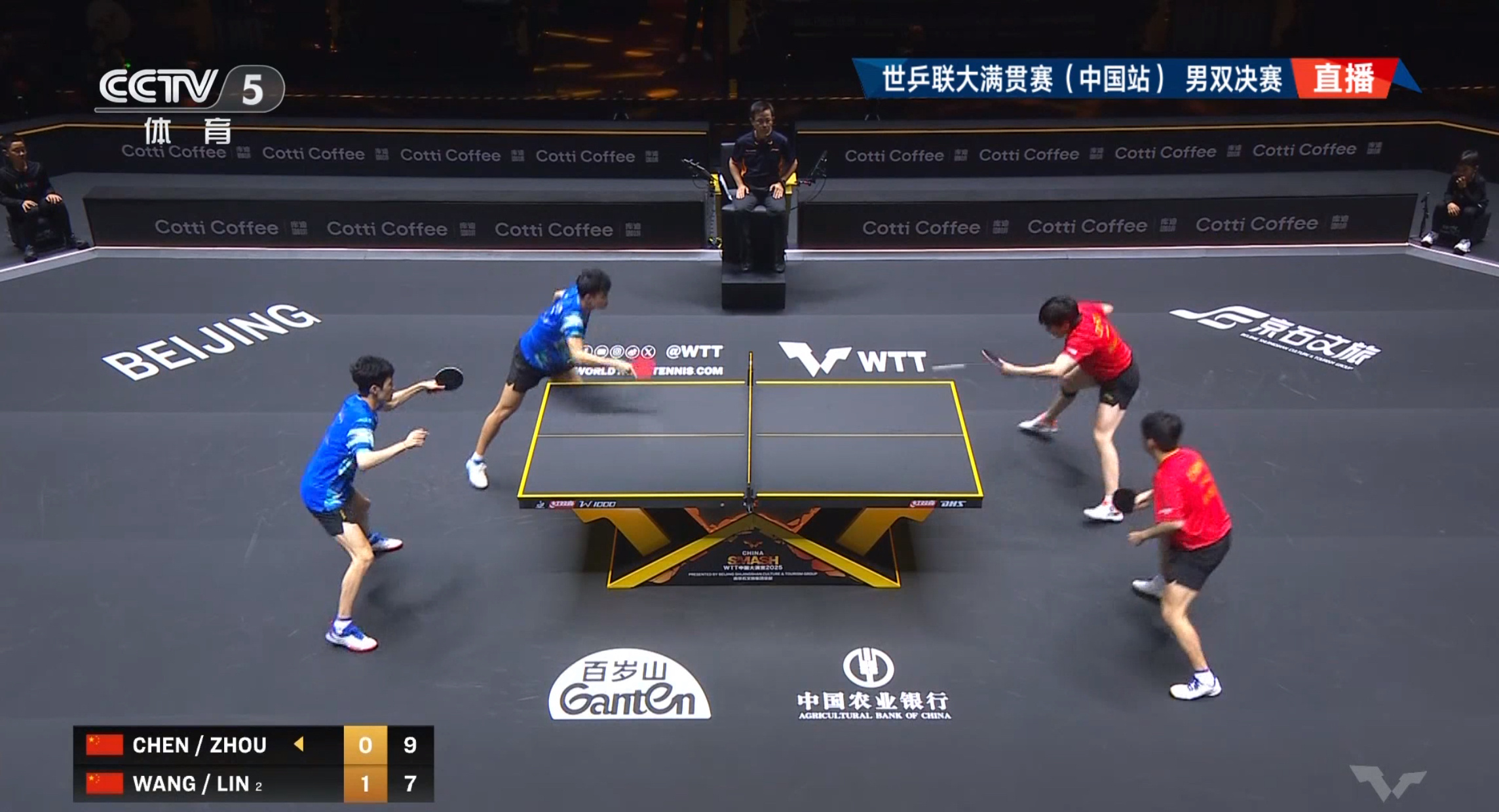 WTT中国大满贯男双决赛上演“中国德比”,王楚钦/林诗栋战胜队友周启豪/陈俊菘,夺得冠军。中国队包揽男双冠亚军。