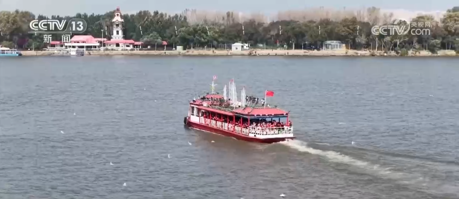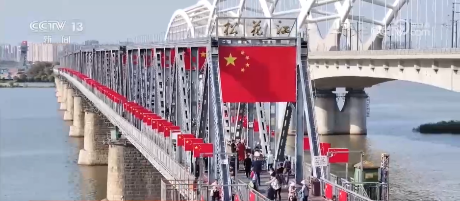 眼下的哈尔滨已经迎来了一年之中最凉爽舒适的时节,每到这个时节,哈尔滨人就非常喜欢来到江边。今年,游客朋友们来到松花江畔,还可以乘坐游船游览松花江,坐在船上吹江风,感受松花江面的壮阔波澜,绝对是不一样的感受。在防洪纪念塔不远处,拥有百年历史的滨洲铁路桥上红旗飘扬,吸引了无数市民和游客前来打卡,滨洲铁路桥桥身上800余面鲜艳的五星红旗迎风招展。滨洲铁路桥始建于1900年。2014年,这座桥完成了原有的历史使命,就改造为开放式公园,市民可以免费去公园内游玩。在不远处,另外一座大桥也跨江而起,此时此刻,我国的高铁复兴号就在这座大桥驶过,这“一老一新”两座跨江大桥前后接续,传承着哈尔滨市“一江居中、两岸繁荣”的使命。