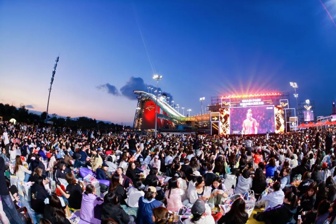 位于首钢滑雪大跳台南广场的WTT大满贯公园,集观赛、互动、展示、餐饮于一体,成为赛事直播的“第二现场”。首钢工业遗存与冬奥记忆贯穿始终,网红地标首钢滑雪大跳台、新首钢大桥与永定河构成独特景观,已经成为WTT球迷心中的最佳观赛点位,国庆期间户外草坪观赛区人头攒动,球迷们在4K高清大屏前为自己支持的球员呐喊助威。