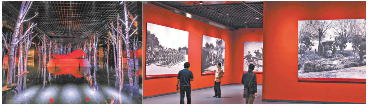 中国共产党历史展览馆四层专题展厅里的“东北抗联遗址出土文物特展”(左)和“为了共同的事业——从西班牙战场到中国抗日战场”主题展。 潘之望摄