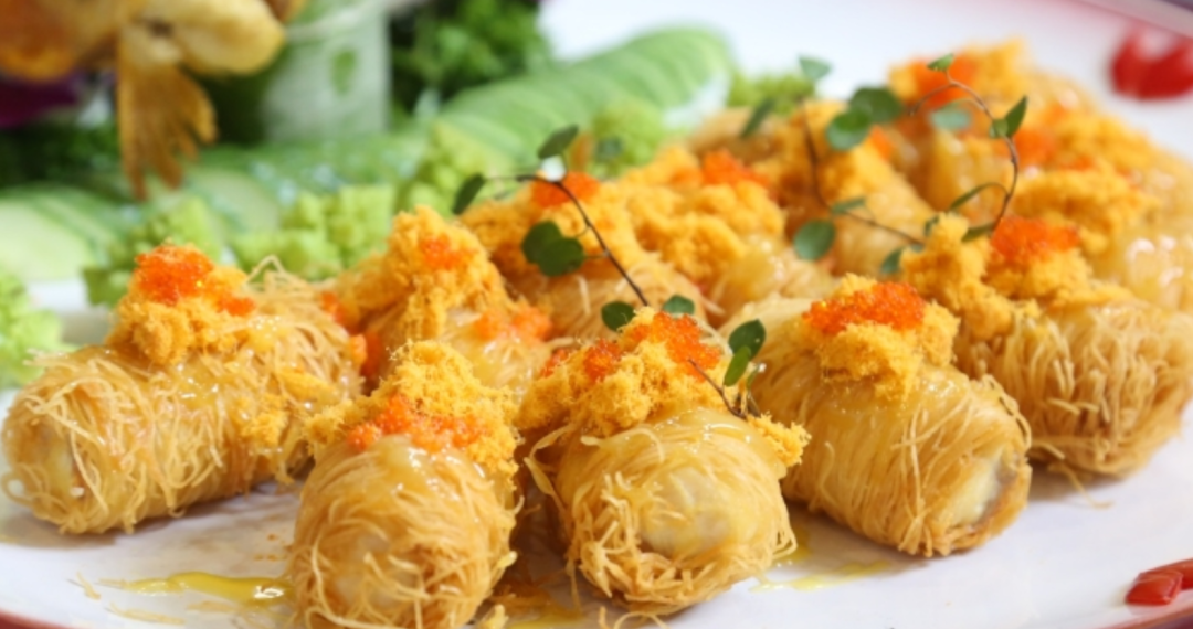 金丝肉松鲟鱼卷是兼具颜值与口感的创意招牌菜。精选怀柔本地鲜活鲟鱼,取鲜嫩鱼肉切条,裹上脆花粒炸至金黄,外覆蓬松咸香的肉松,形似金丝缠绕,层次分明。入口先是肉松的绵密咸鲜,接着是脆花粒的酥脆,内里鲟鱼肉细嫩无刺,汁水饱满。