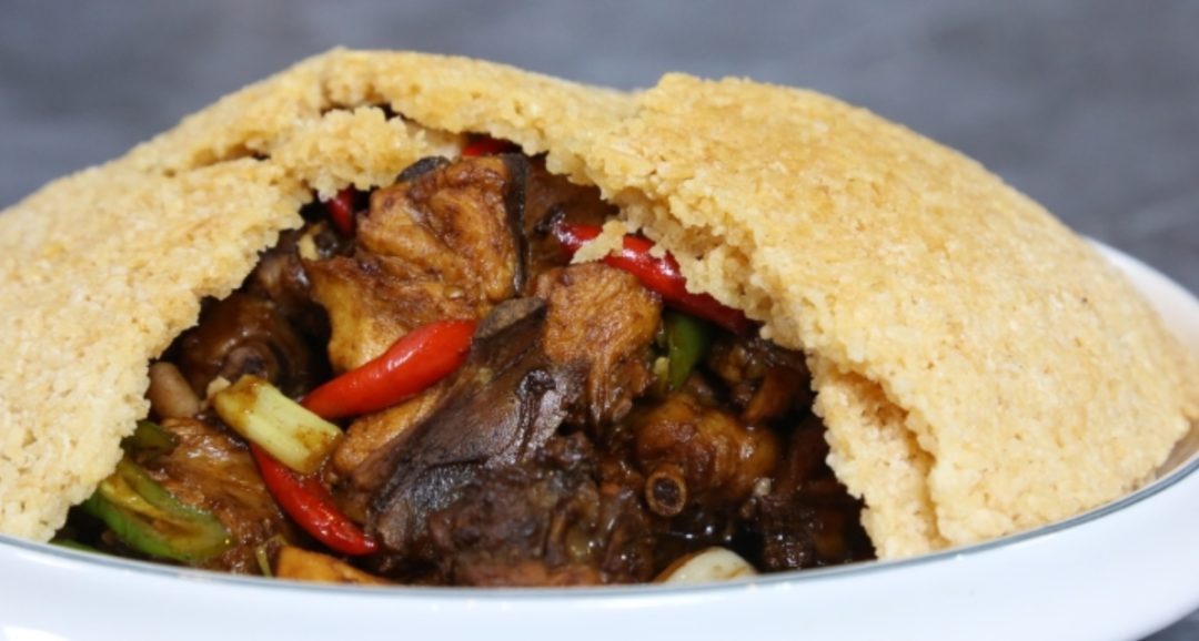 手工锅巴秘酱花园炒鸡以鲜嫩土鸡为主料,搭配现烙手工锅巴。土鸡先炒至金黄,再加入独家秘酱焖煮,酱香渗入肉中,肉质紧实不柴;手工锅巴脆而不硬,裹满秘酱后外韧里酥。