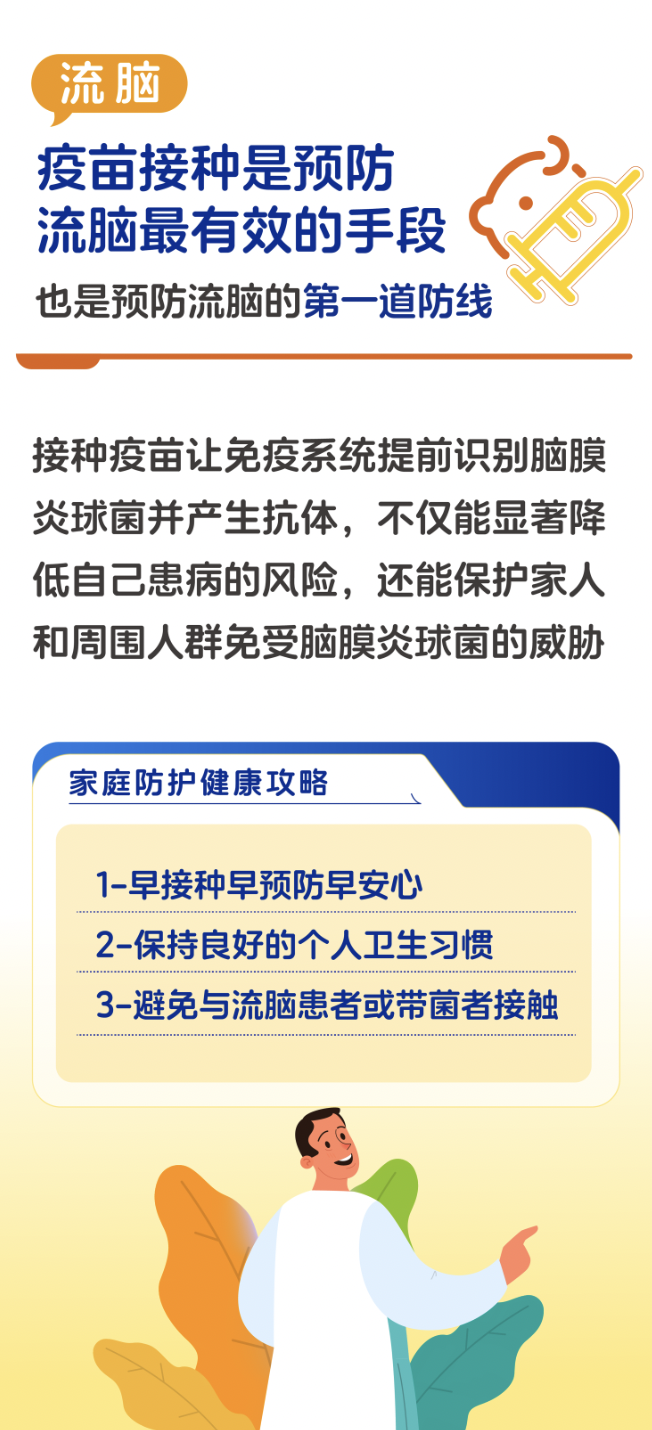 世界脑膜炎日(10月5日)到来之际,我们呼吁社会各界共同行动,以科学为武器,以教育为桥梁,持续提升流脑防控水平。接种疫苗不仅是保护自己,也是构建群体免疫屏障、履行社会责任的体现。让我们助力实现世界卫生组织“2030年战胜脑膜炎”的全球愿景,守护每一个生命的健康与未来!