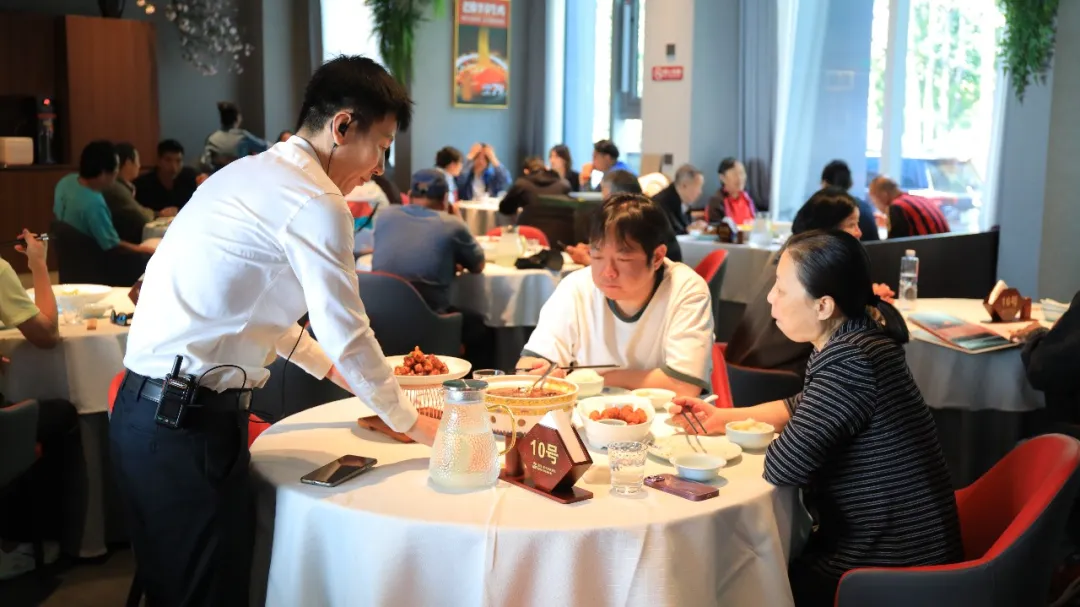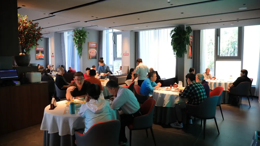 惠丰堂1300平方米的空间里,散客区坐拥公园观景视野,家人围坐赏景吃饭;包厢区清净雅致,不少上班族趁着假期约着同事亲友小聚。“环境清幽,菜品有档次还不贵,朋友聚会太合适了!”刚结束聚餐的张先生说。