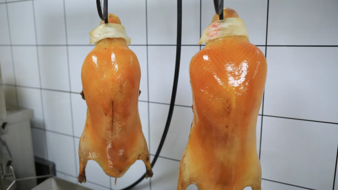 如今走进餐厅,招牌慈禧养生烤鸭依旧延续宫廷工艺——选用42天北京四系填鸭,以茯苓、菊花等十余种蔬果按酸碱平衡原理腌制,经70分钟焖烤后脱油降脂,皮酥肉嫩的口感,让不少游客专门为这一口而来。“这款烤鸭秉承宫廷技艺,主打药食同源与食疗养生,通过精心烤制,达到去腥解腻、入口生香的效果,旨在为顾客提供绿色健康的美食。”惠丰堂烤鸭总监张利强介绍。