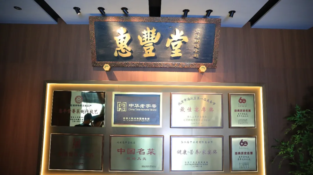 能在假期“出圈”,离不开惠丰堂百年积淀的硬实力。作为原京城“八大堂”仅存的老字号,自1858年创立以来,它便以鲁菜扒烩、爆等技艺闻名,更因慈禧太后御笔题字、赐“圆笼扁担”的典故,承载着老北京的饮食文化记忆。