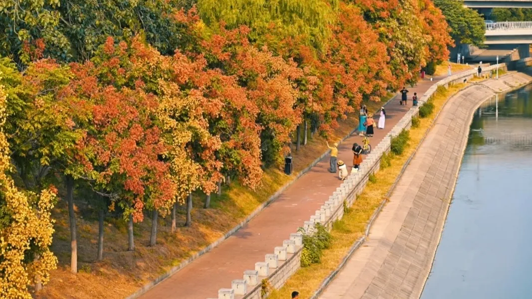 📸温馨提示:河边拍照,注意安全。另外,栾树虽美,但不要折枝摘果哟~
