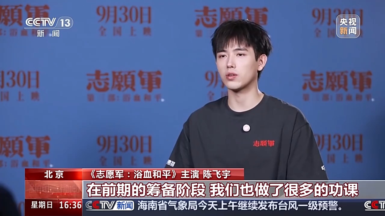 《志愿军:浴血和平》主演 陈飞宇:在前期的筹备阶段,我们也做了很多的功课,关于对于这段历史的学习,以及对于自己人物的塑造,我都更加深刻地理解了这段历史对于中国人民的意义,以及对于我们今天拥有美好生活的意义。