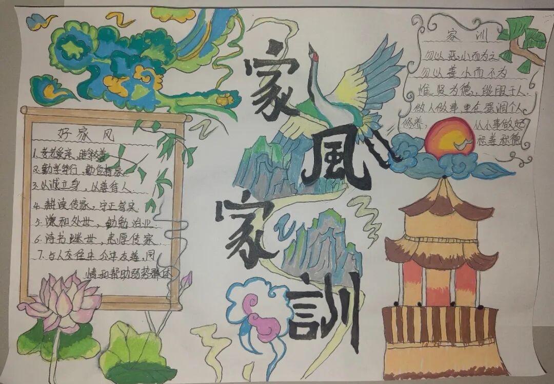 本期为家风手抄报作品,与大家共勉。