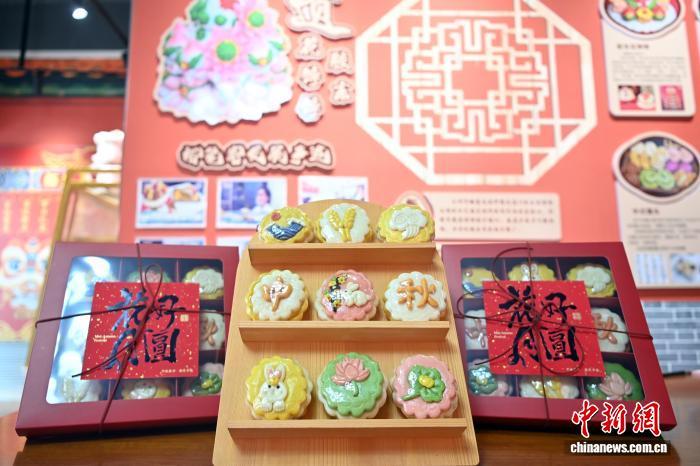 资料图:图为展出的九宫格“馍”法月饼。中新社记者 九美旦增 摄