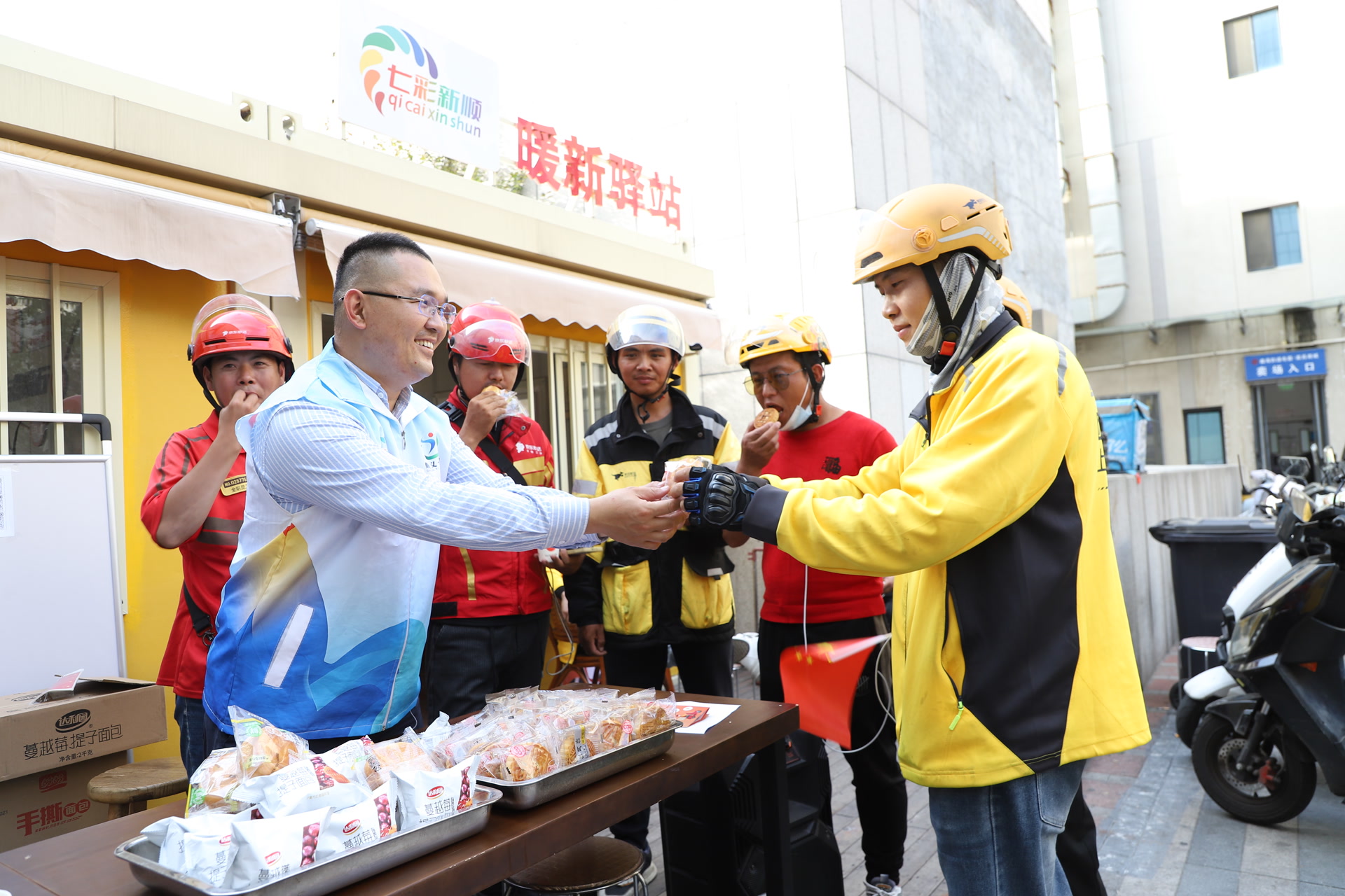 当被问及国庆假期为何不陪家人休息时,张宁笑着说:“看到小哥们喝上热茶、吃上月饼时的笑容,我就觉得特别值。他们为城市奔波,我们能在假期里为他们搭把手,让他们感受到这座城市的温暖,这就是我最好的节日礼物。”