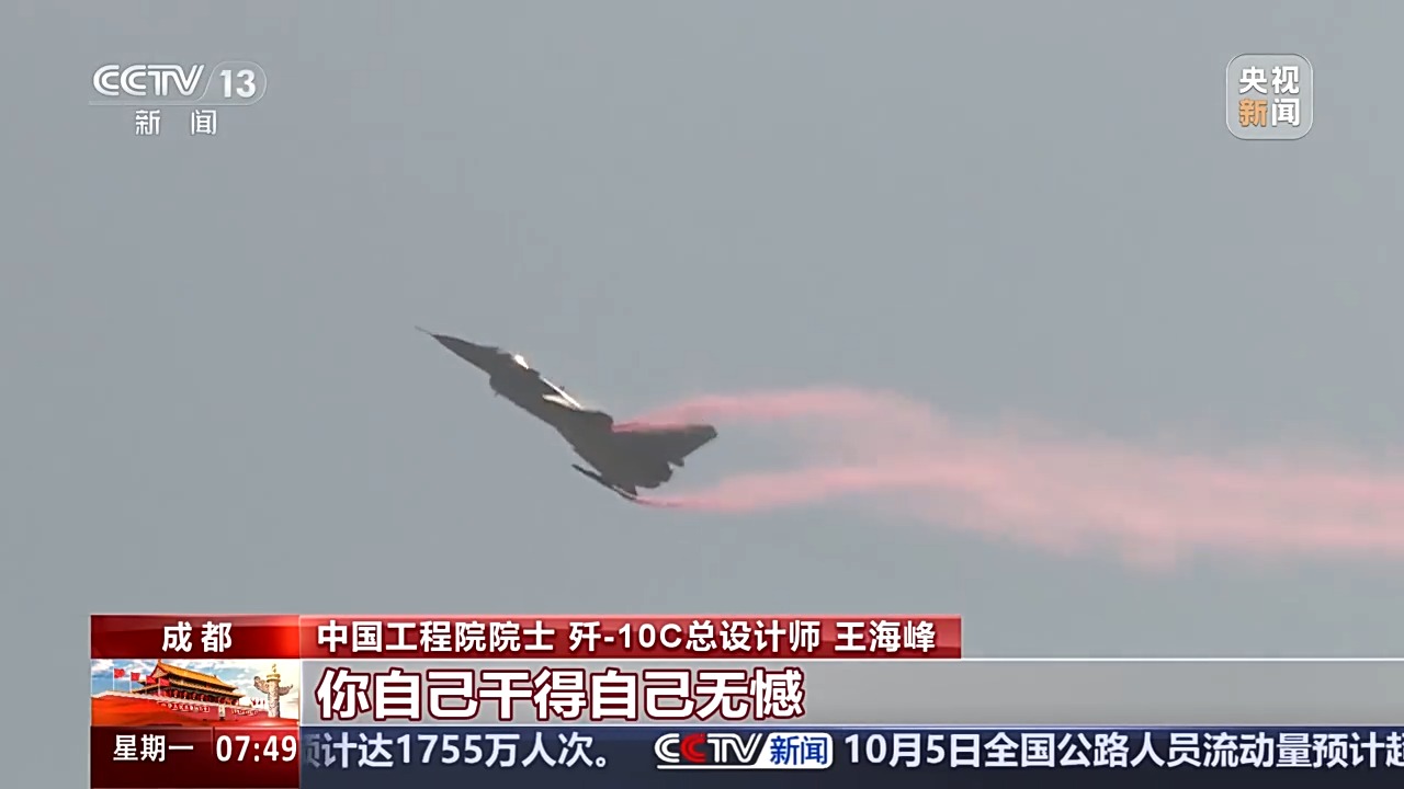 中国工程院院士 歼-10C总设计师 王海峰:全世界航展上没有一架单发飞机把这5个动作做全的,我们是全世界首次,就这一架飞机。