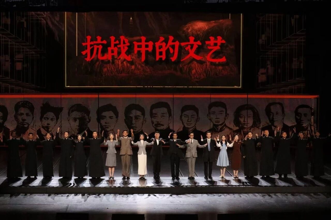 舞台上,多媒体屏构筑的“抗战博物馆”内,历史画卷徐徐展开,延安文艺座谈会的珍贵照片接连浮现……10月4日至7日,中国国家话剧院文献话剧《抗战中的文艺》,作为纪念中国人民抗日战争暨世界反法西斯战争胜利80周年优秀舞台艺术作品展演剧目,在国话剧场连演四场。