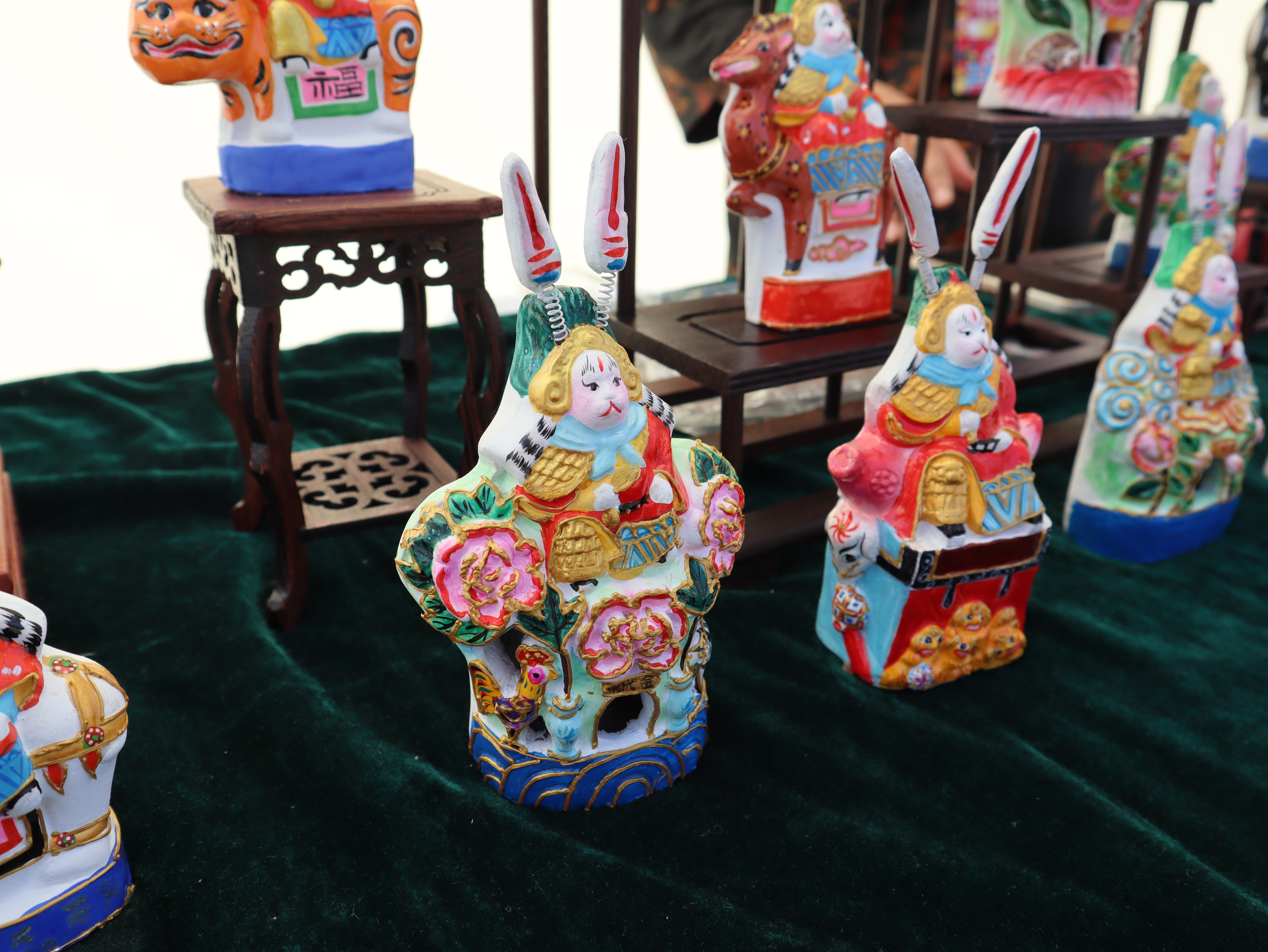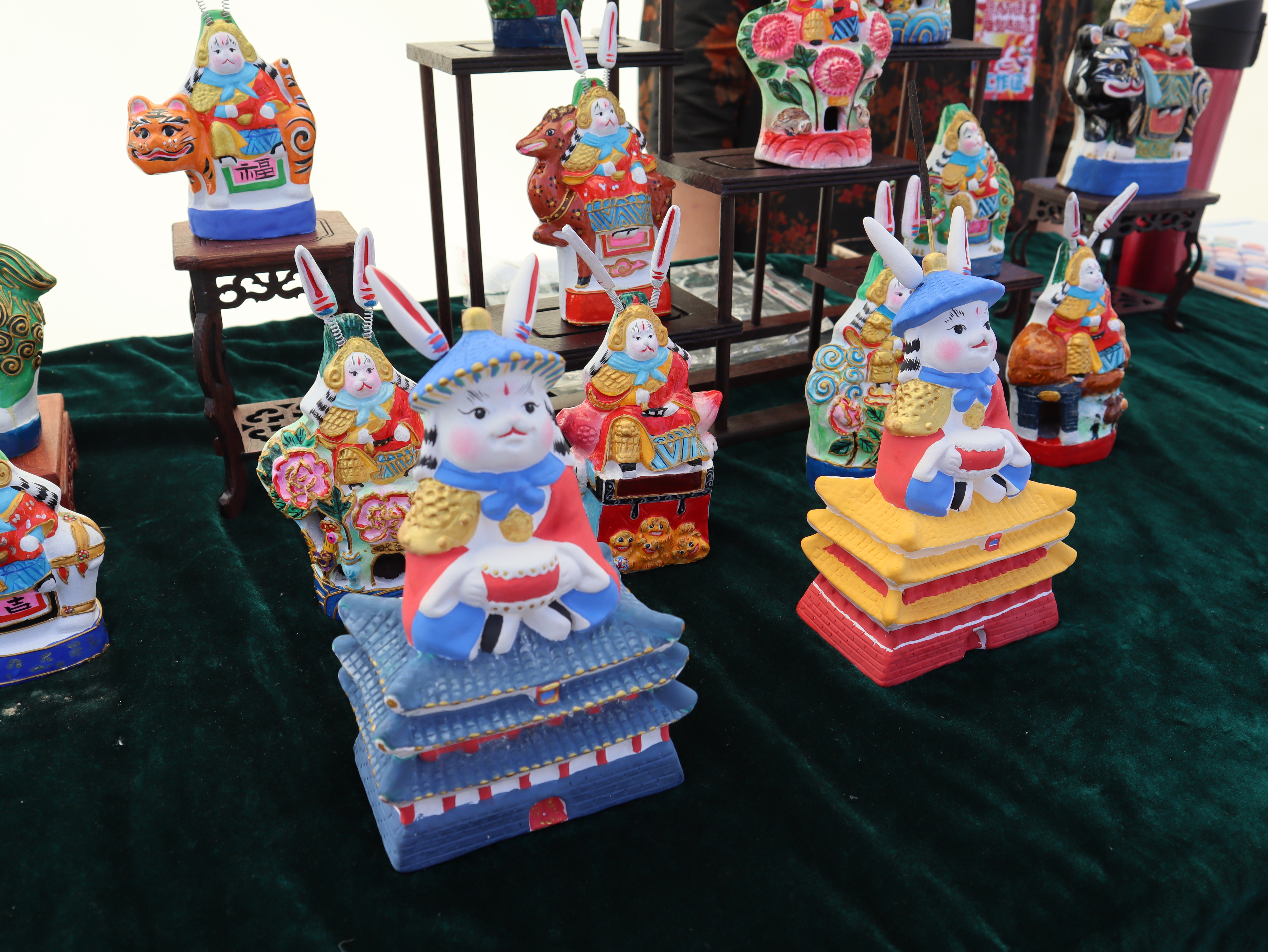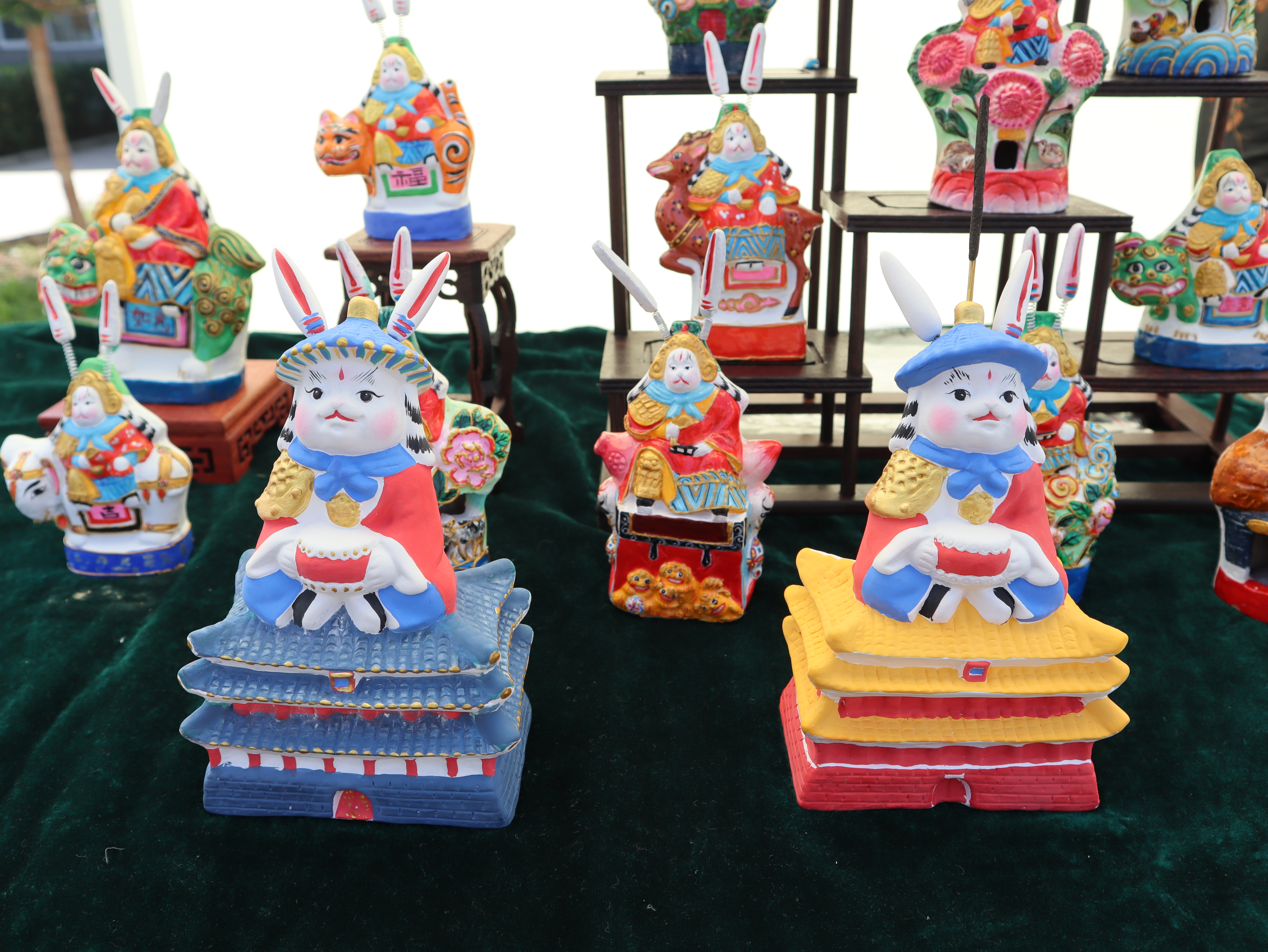 走进北京国际雕塑公园第十三届非遗文化体验周活动现场,在非遗互动体验项目区,一尊尊老北京兔儿爷泥塑作品十分引人注目。只见兔儿爷兔首人身,山形眉,三瓣嘴,斜披着红袍,身施彩绘,竖着两只大耳朵,手里拿着捣药杵,骑在各种各样的坐骑上,十分生动灵活。这些作品均出自北京民间玩具工艺大师、东城区民间文艺家协会副主席、东城区金光洞兔儿爷代表性传承人、中国工艺美术大师双起翔第四代入室弟子林爱幸之手。“俗话说‘八月十五的兔儿爷,得吃得喝’。兔儿爷是老北京传统的节令玩具,也是中秋节习俗之一,过去在中秋节,可不只是吃月饼、赏月亮,家家户户还要请兔儿爷,感谢玉兔给人间带来的平安和吉祥,这已经有400多年的历史了……”讲起“金光洞”兔儿爷的典故,56岁的林爱幸头头是道。