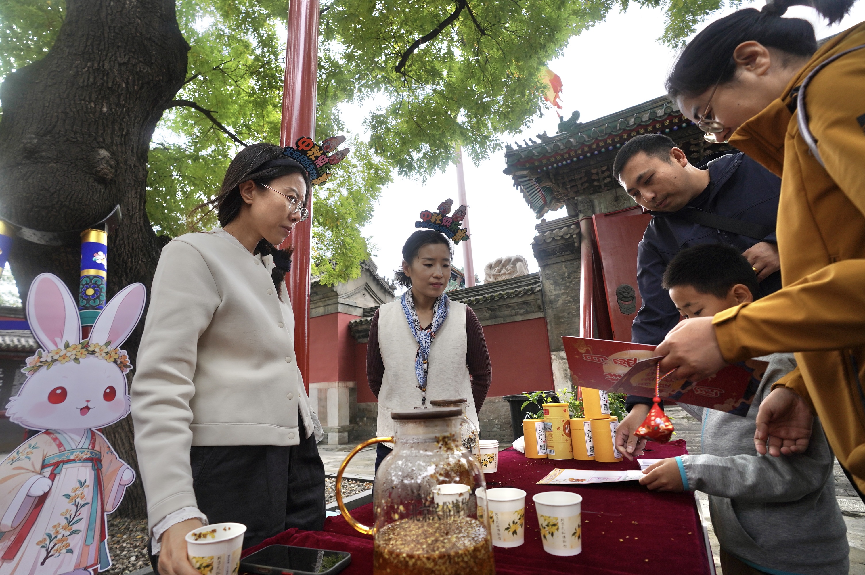 10月6日,北京民俗博物馆举办“月盈中秋 桂香满园”中秋游园会,邀游客品节令花茶、猜趣味灯谜、寄中秋情思、观非遗兔儿爷山,一起仿古人习俗,赏宜人秋色。游园会融合传统中秋民俗和现代创意,为游客提供传统文化现场体验,在700余年古庙里感受传统非遗和中秋节日氛围。
