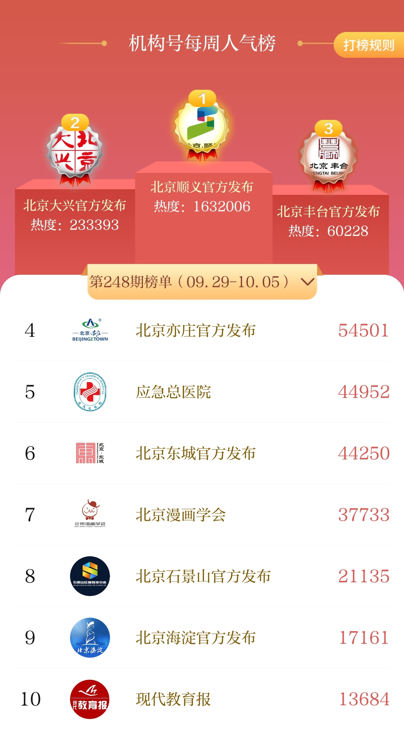 9月29日至10月5日 | 北京号一周人气榜