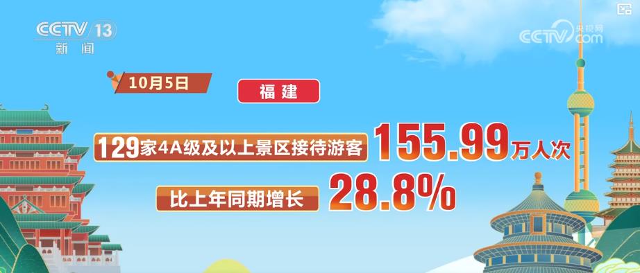 假期第五天,福建监测的129家4A级及以上景区接待游客155.99万人次,比上年同期增长28.8%。假期前五天上述文旅单位累计接待游客725.66万人次。