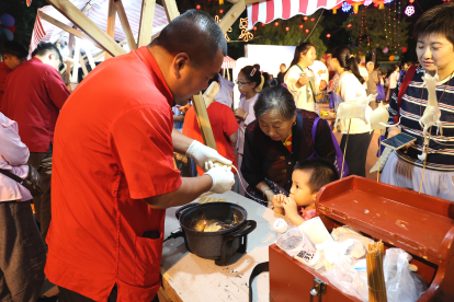 非遗体验区同样热闹纷呈。晶莹剔透的糖葫芦、栩栩如生的糖人等六大非遗项目吸引了众多孩子动手参与。在手工艺人的耐心指导下,大家亲身体验传统技艺,感受非遗魅力。