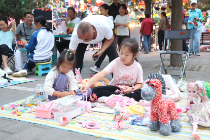 一旁的青少年创意市场中,“小摊主”们热情分享亲手制作的辣条等美食;旧物兑换区也排起长队,环保理念在邻里互动中传递;游艺区则设置了动感篮球、趣味投壶和垃圾分类知识问答等互动项目,大家在欢声笑语中锻炼身体、学习知识。活动尾声,居民们凭入场券前往兑换处领取中秋好礼,为这场嘉年华画上圆满句号。