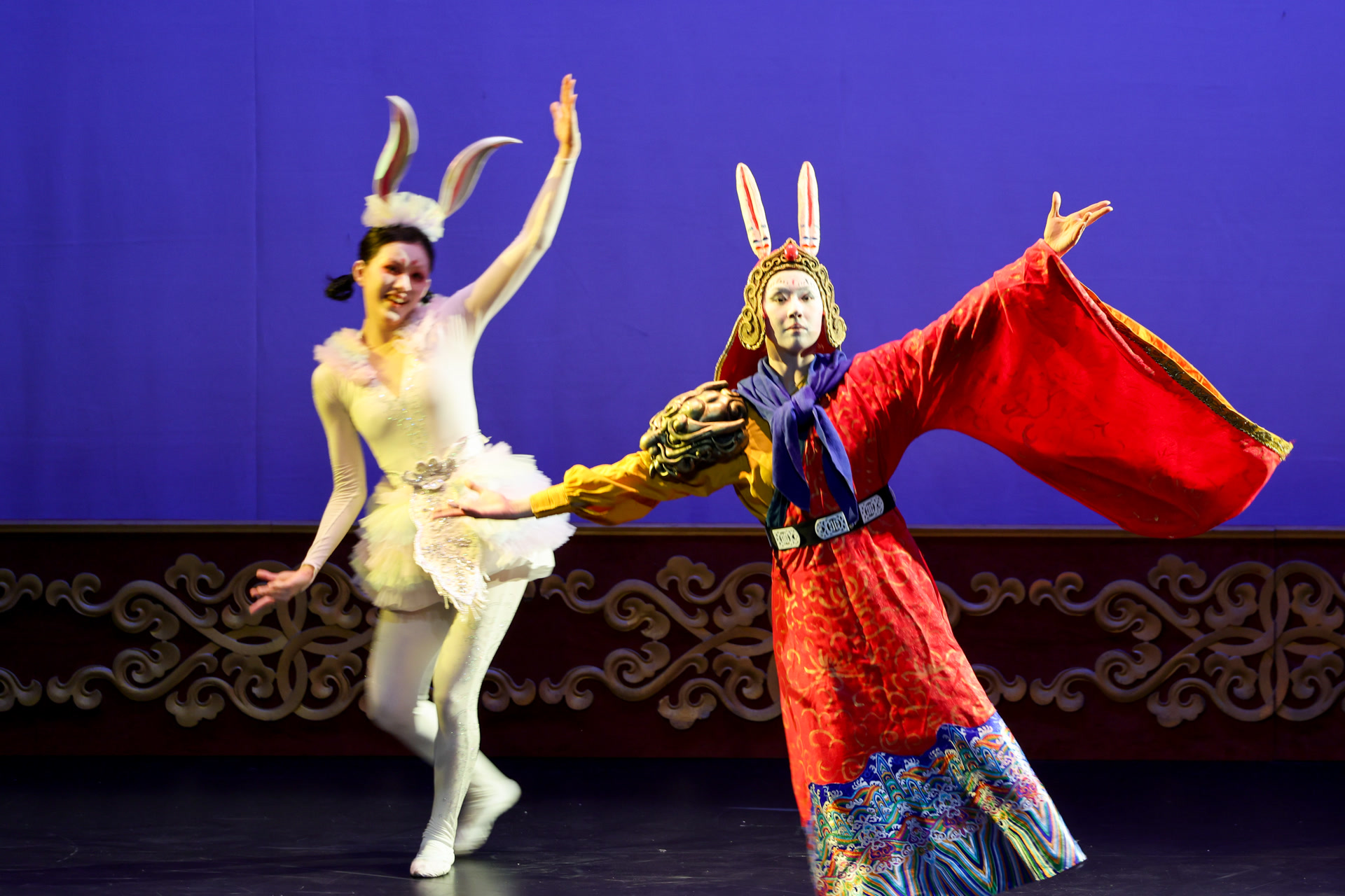 舞剧《月·兔》将北京非物质文化遗产“兔儿爷”的传统制作工艺——“择泥、塑形、彩绘”,创新转化为现代舞的叙事语言与舞蹈篇章。七位舞者以灵动身姿演绎传统故事,让“兔儿爷”这一民间形象在当代舞台上焕发新生。