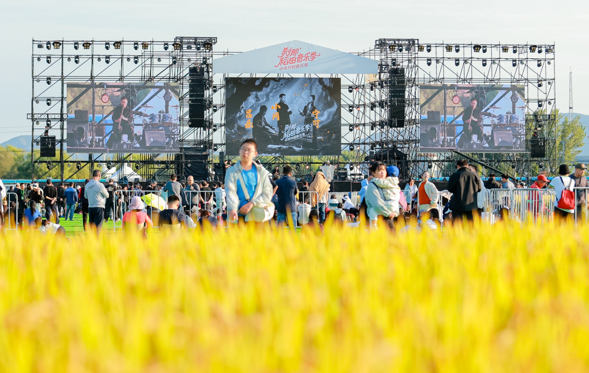 音乐季选址京西稻保护性种植区,将舞台巧妙嵌入千亩稻田之中,打破了传统演出空间的界限。金黄的稻穗在秋风中摇曳,与远山、夕阳构成天然画卷,为演出提供了独一无二的背景。活动汇聚了唐朝老五刘义军、藏地天籁央吉玛、热西·才让旦等十余位音乐人,从摇滚到民谣,从世界音乐到古典弦乐,多元艺术形式在稻浪间交织共鸣,为观众打造了一场超越听觉的五感艺术盛宴。