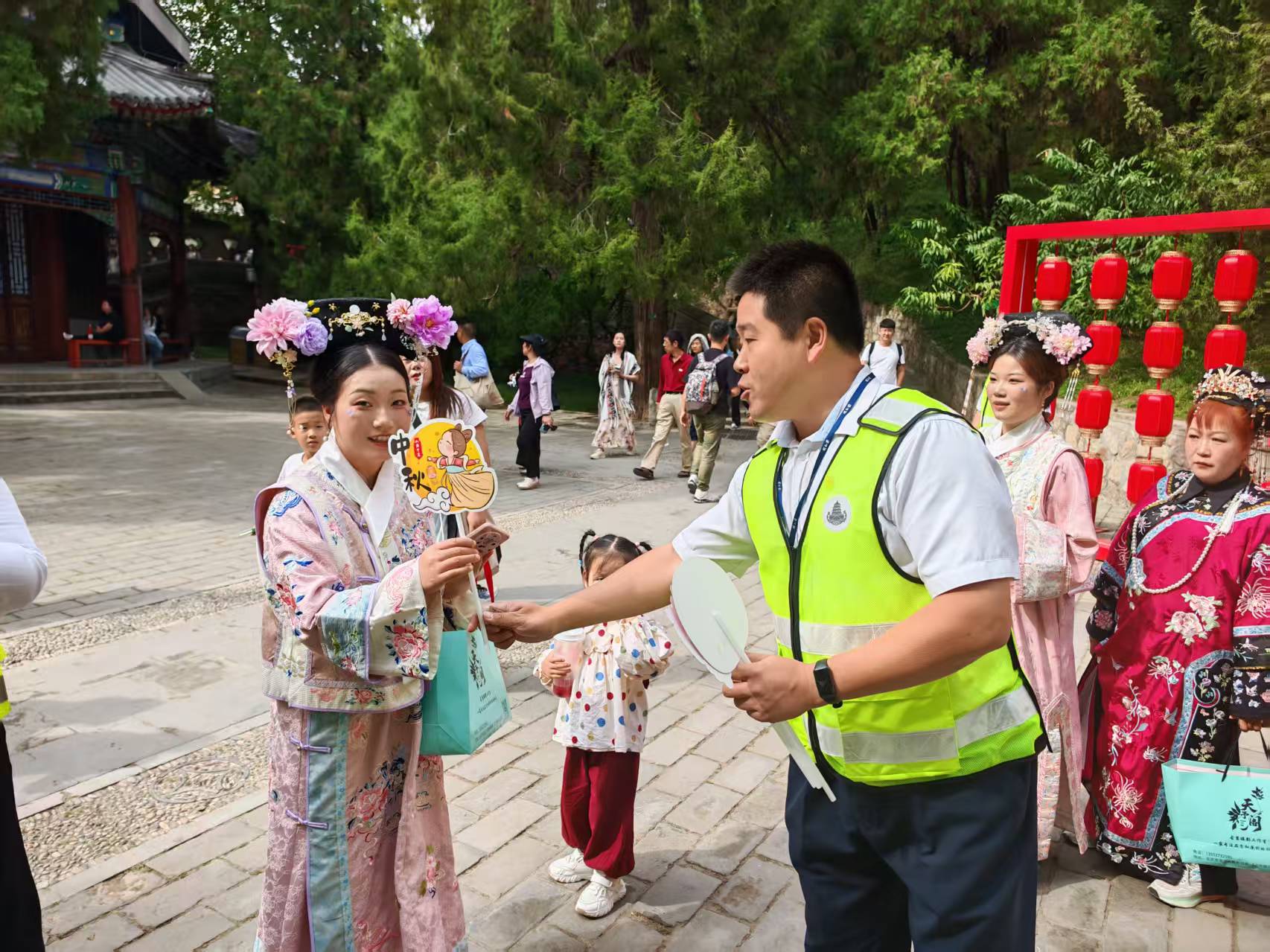 为此,王冠炜和同事们提前布控,在公安民警指导下利用现有廊体树木设置醒目警戒线,区分进出上下行通道,在重点部位架设临时指示和提示牌70余块,“请大家不要停留,跟着引导往前走!”手持喊话器的他,每天要在此往返穿梭十余次,反复提醒团队游客注意安全。“全队投入警戒带150盘将近1.5万米,使用警用喊话器30余只。”