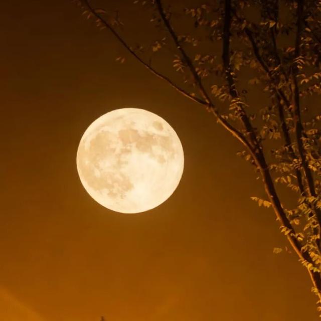 抬头看到这轮月,最先想起“暮云收尽溢清寒,银汉无声转玉盘”,云散风清里带着凉意,银河无声铺展,月亮像玉盘般流转,景色实在美好。只不过转念间,恍惚会想起往年此时,家里早摆好盛着月饼、石榴的瓷盘,妈妈会催着我与爸爸到阳台摆桌子,趁着月光聊些街坊趣事,欢笑声漫漫。