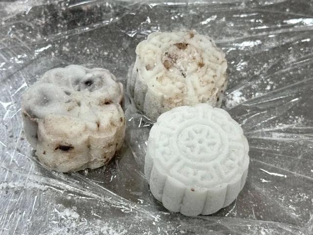 接着将月饼坯压模成型,一枚枚印有花纹的奥利奥冰皮月饼便暖心出炉。